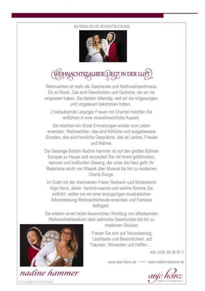 Sie erleben einen heiter-besinnlichen Streifzug von altbekannten Wheinachtsklassikern über satirische Geschichten bis hin zu modernen Stücken.